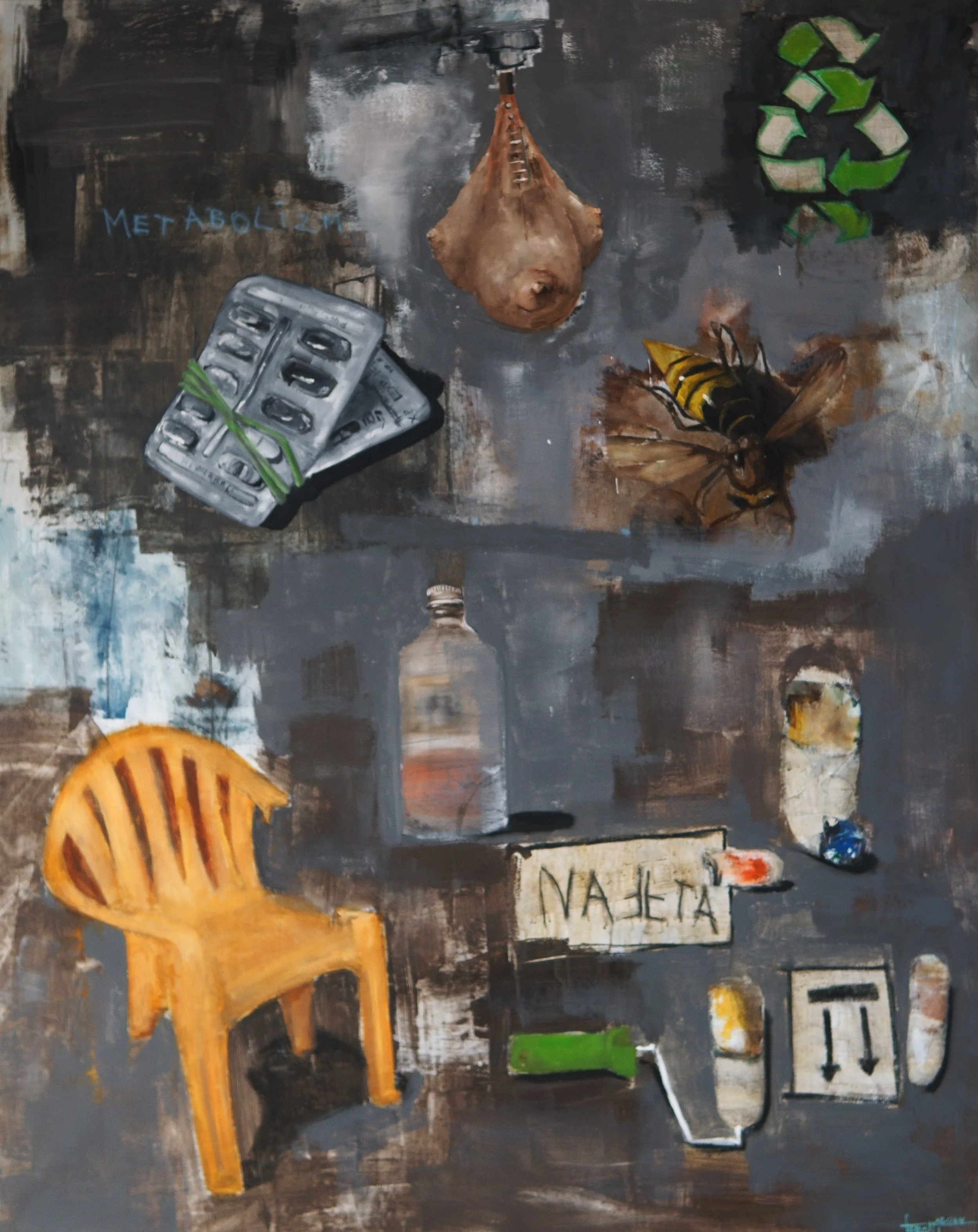 akryl, latex, olej, węgiel, pastele olejne, marker